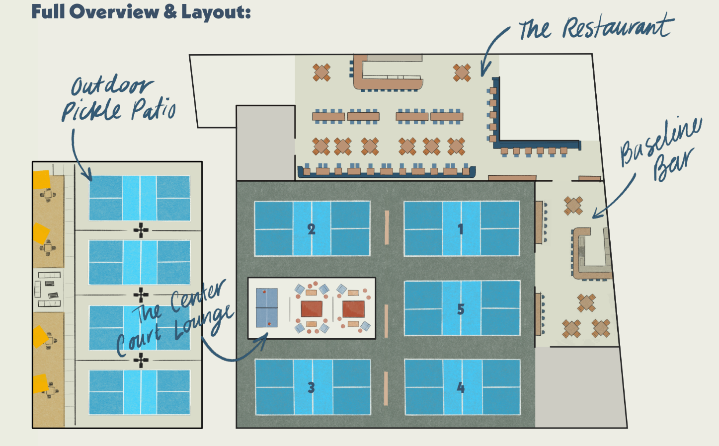 Full Baseline Bar buyout located off Court 1 and 5, featuring easy access to our courtside bar, seating for up to 60 guests, and built-in entertainment with shuffleboard and retro arcade games—ideal for social gatherings and post-play hangouts.